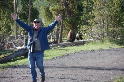 Saturday, June 1. 2024 Today we did the Yellowstone Upper Loop. The Blooms joined us for this leg (and the next 2 days). We knew beforehand that this part of the trip was probably going to be overwhelming. We broke the stay into four parts. The upper loop, intro to the geothermal and a lot of waterfalls. The lower loop, more geothermal and more opps for wildlife. And then a loop of the Tetons, mostly grand scenery. Each loop would be 70-96 miles with 30 to 100 mile "get there" drives. (Day 4 is for recovery or a quick visit to something we missed ro wanted to see again) Our priorities: 1) see springs and geysers, 2) see wildlife we don't see on the east coast, 3) soak in as much of the scenery as possible. We had hardly entered the park when we almost ran into our first bison. Literally, on the road. We now know why there are holdups on the roads in Yellowstone due to gawkers that stop in the road to take pictures. This was a small group, we took some pics, pulled into a turnoff and got some more.