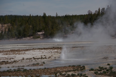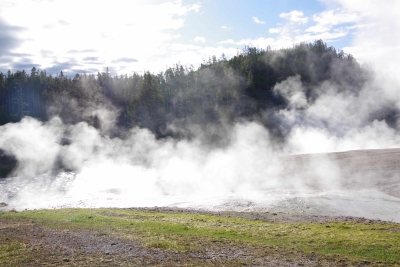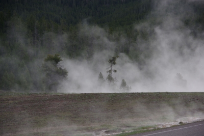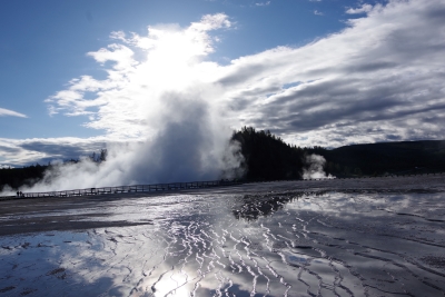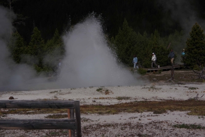 We finally got through the visitor center and got some early views of geothermal action.