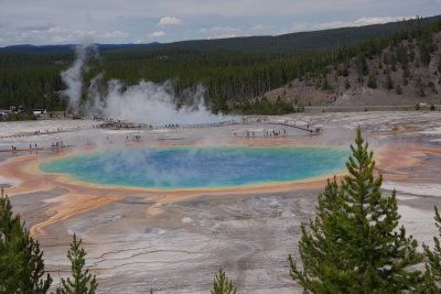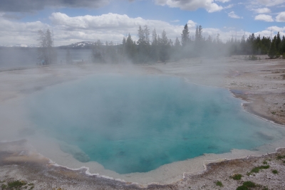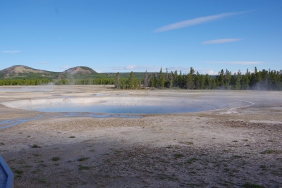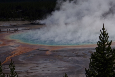 Even though there were hundreds of "dont walk here" signs, it apepars that the antelope either can't read or chose to ignore the warning. Buscuit basin was actually more expansive and gave us some better picutres. Biscuit basin is the home of the Prismatic Pool. at ground level and with the steam we didn't get much of a shot.