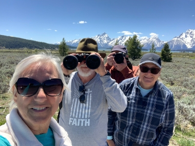 Saturday, June 1. 2024 We exceeded 9000 miles on the drive today. And exceed 3000 pictures in the camera. Today was a visit to the Tetons. My primary goal was to capture the Tetons, and while they dominated the view, we did stop at some lakes along the way. Lisa is the queen of selfies, and it appears that her subjects were entirely cooperative.