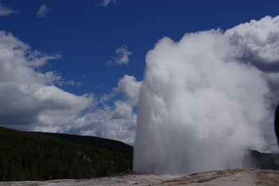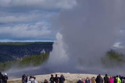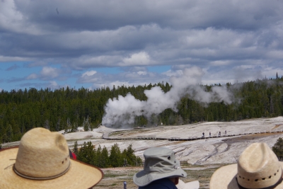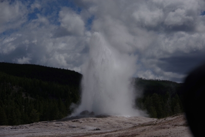 So we sat back and waited for the next show (hour and a half or so). Wondered if this would be a suitable retirement home (if I put a pool out back). Old Faithful is reliable and relatively regular in its eruptions. Beside Old Faithful is the Beehive Geyser. It erupts twice a day. We were lucky enough to have it erupt just as Old Faithful started up again. I got a couple of pics that weren't that great only because I was in the middle of the OF crowd and quite a ways from Beehive. We got the main show. And quite a show it was.