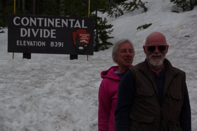 The show started with a choreographed ride with 16 ladies on horses. Very well done. As a professional rider myself I only noticed one mistake. The horse broncing had it's ups and downs (definitely more downs). None of the four contestants rode for the required 8 seconds in the first round. One made it through round two, for the win Two of the four horses actually fell. Horse one that fell landed on the cowboy, and then immediately got back up, with the cowboy on his back, and started broncing again. It didn't count as a ride, but lisa and I gave the horse a 50 out of 50 for his performance. There was calf roping. I caught a pic of the eventual winner as the lasso made connection. I did say there were more downs than ups, right? This guy barely made it out of the chute when he went head first over the front of the horse. Here's a picture of the eventual winner. Sunday, June 2. 2024 Today was a travel day. In our original agenda this day was going to be awful. But with the thawing and plowing, the passage from the west to east entrances of Yellowstone were open, and we breezed through the park. Most of the trip on the west side was snow covered.
