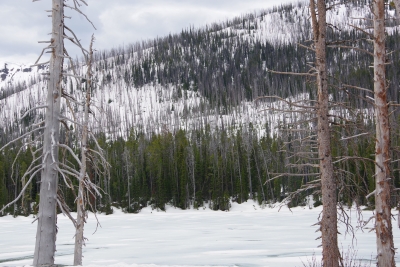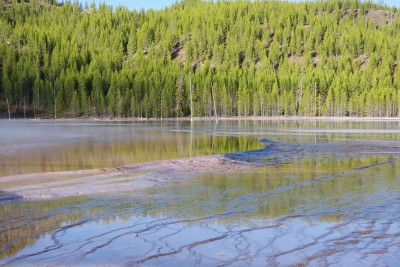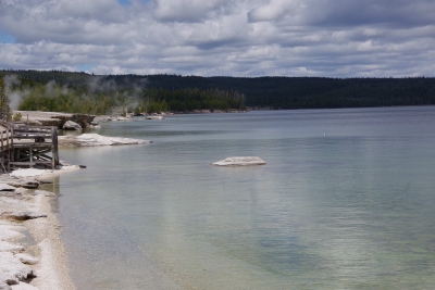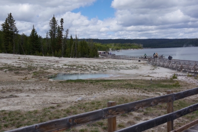 During the trip we crossed the Continental Divide. Visited Isa Lake (it was small, this was the entire thing). And then crossed the Continental Divide again. Oh, and then we went to ANOTHER BASIN. This one was West Thumb Geyser basin. This was unique because it borders Yellowstone Lake.
