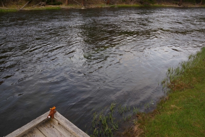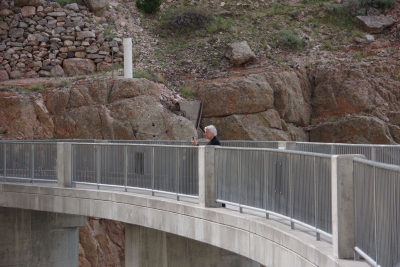 The outlet of water flowing through a channel in the dam was from the hydro plant itself at the base of the dam. Pretty powerful. Yes Lisa is afraid of heights, but she got out there to take pictures. The beginning of the lake behind the dam.