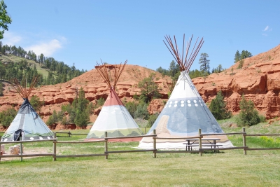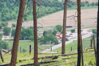Crazy Horse and Thunderhead mountain were both selected by the Lakota people. Korczak Ziolkowski was the selected sculptor. He made this project his lifetime quest. He passed before the face was finished. The hole you see is the start of the gap bewteen Crazy Horse's arm and his horse. While we can't get that close, we were close enough to be awed by the ongoing work at this memorial. Saturday, June 8. 2024 Today was (another) travel day. We got about 2/3 through the trip and discovered that the road was closed. Added half an hour to the trip but made it to the campground unscathed. Which reminded us that our trip to date has been spectacular in relation to traffic, routing, and road mishaps. Thank God. We saw a car get towed out this campground due to a breakdown. That family is stuck, but, thankfully we are in a KOA resort. They seem to have everything from food, horse trail rding, multiple pools, multiple playgrounds. After getting set up, we noticed that they were warming up..... ... for a RODEO. two rodeas in a week. Lisa was exstactic. Cowboys (and girls) are as patriotic as ever. Young girl carrying the flag for the opening ceremonies. And let the broncing begin. They had barrel racing. We got to see the ladies... ...and the kids. I can see Noelle doing this. And then back to the broncing. This was my favorite pic. Foillowed by team roping. The lead guy ropes the horns, then the second guy ropes the rear feet. And then, goodnight horse. Friday, June 7. 2024 Ahhh, Devil's Tower. The answer to the Day 52 question: How many pictures can you take of the same object. Answer: 67 Next question: do you want to see them all? Ahhh, I hear a no. Good, because I don't want to configure them all for uploading to the internet. Devils Tower as we start our hike around the base. Devil's Tower as the sun creeps over the top. Same shot, with a different exposure. To show you something different, this is called cracked window. A section of the rock broke off in almost a perfect rectangle. Remember I showed you the shot of the Tower from the camper? Here's the camper from the Tower. The opposing side of the Tower. If you stay very still you can hear them. Charlie: Hey Bob can you see them? Bob: No, but I saw them just a minute ago. Charlie: Where could they have gone? Bob: Exactly, and they were driving that big blue truck!?!?!? Charlie: We're so going to get fired as watch dogs. Bob: Sigh. Next to our campground, the red rock. Oh and some tipi's. in the afternoon, we took a second hike to see a different vantage point slightly further away. Lisa was awestruck (and tired). Along the hike we saw this interesting carving in the (assumedly sandstone) proving that there was some significant water in this ravine some 10 to 1000 thousand years ago. Ahh. goodnight Prairie Dogs. There were hundreds of them in the field as we left. This guy had no problem picking us out of the crowd. Poor Bob and Charlie. Friday, June 7. 2024 Travel day to Devils Tower Not much to say, but we set a new standard for KOAs closest to a national park. We are two sites from the entracne of the KOA. The KOA entrance is 100 yards from the park entrance. Our view from the RV...