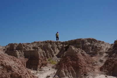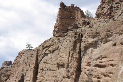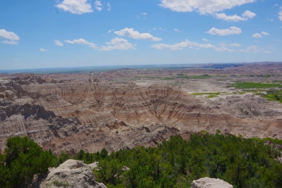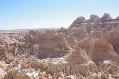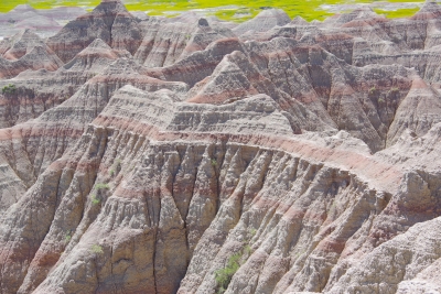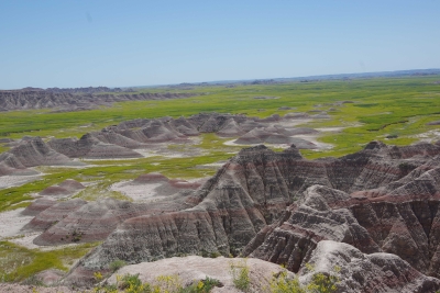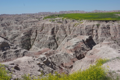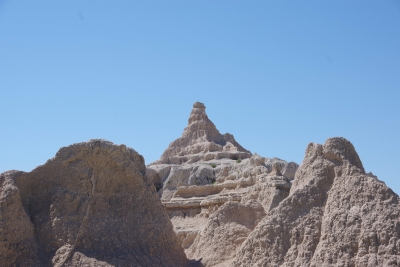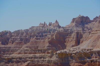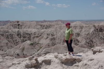 The mill. The pwoer generator. A shallow section of the falls. Trying to caputre the total drop of the falls. My first picture was of the top section of this picture. Remember descriptions of the Giants Causeway in Scotland, Devils Tower and Southern California??? the rock is pushed up due to volcanic actions, cracked into hexagonal shaped columns, and then broke or eroded into stepping stones. Here is another example of those rock formations. Once you've seen them, they're easy to pick out in other areas. Thursday, June 13. 2024 Because we haven't done enough driving, we opted to drive through the Badlands today. While yesterday was a challenge for the numebr of shots of a stationary object, today was a challenge to take enough shots to capture the beauty without using up the battery. this place was spectacular, awesome and gorgeous. From a photographer standpoint, it was a challenge in capturing the panormaic aspect, the depth of colors, the variations in the rocks, and a ton of other stuff. Well timeout. we got a couple of good shots and then looked at the map of the loop availble to us. And noted that if we took a 5 minute detour we could visit the Minuteman Missile National monument. We ran up there for a quick tour. They have done an excellent job capturing the intensity of the nuclear conflict. we now compare Los Alamos, the Atomic City, the Experimental Breeder reactor and the Silos on our trip. Our badges show we had no exposure. Back to the Badlands. This is Lisa (surprise) on top of a ridge on one of our walks. BTW, if you ever do this, bring water.