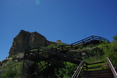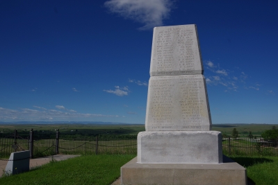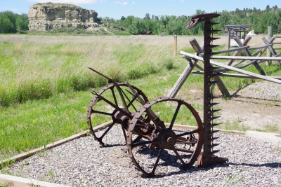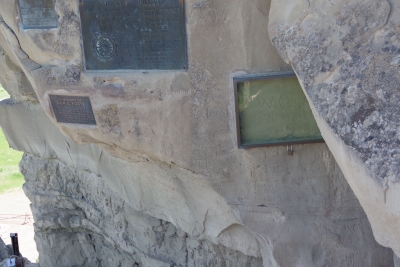 The only question for tomorrow. How many pictures can someone take of the same object? Thursday, June 6. 2024 Little Big Horn Battlefield was on my list of places to go. A National Monument and a designated battlefield. Up front, I'm not a big fan of Custer. But I have to appreciate what he did as a leader in military conflicts. I remember studying the last stand in the late 60's. there was an emphasis at the time of the masacre of the Custer infantry. Later I have studied and come to realize that this wasn't an attack by the Indians, but a defense. Sometime I'll get into the events leading up to this moment. Here is a generic shot that shows the white stones that mark all the know locations that a U. S. soldier died. It's amazing as you cover the battlefield that you can follow the battle by studying the white markers. I memorial has been established by the Native Americans that commerate the heroics of the Indains at that time and the peace that was finally established in the area. In contrast to the white markers there are brown markers that designate the spot where known Indians fell. There are fewer markers for the Indians. One, there wer about 5 infantry deaths for every 1 Indian death. Two, the Indian participants are not all identified. Three, the U.S. forces that arrived after the battle only looked for infantry bodies. Fourth, The Indians came back after the battle and removed as many bodies as possible. There is a graveyard on-site. It is rather large. It includes the remians of some of those involved in this battle, but there is also remains for soldiers from the civil war, both world wars, the korean conflict and the vietnam conflict. There is a cemetery dedicated to the horses recovered from the battle. And a monumnet to all those that fell during the battle. OUr added attraction was a visit to Pompey's Pillar. The Pillar is described as the only geographical landmark still visible that was documented by Lews and Clark. We started at the visitors center )makes sense) and admired the replica dugouts similar to those made during the L&C trek. The flag on the premises is a replica of the flag carried by L&C on the trek. Note that there are 15 stars and 15 stripes. The next falg returned to the orignal 13 stripes. Oh yeah, Pompey's Pillar. And the steps to get to the top. 200 feet, 10 stories, 130 steps. And Lisa (the tropper) climbed to the top! Before we got to the top the was a spot that had a couple of memorial plaques and a Lewis signature. Many persons had seen the petroglyphs scratched into the sandstone and added there names to the collection. Lewis opted to added his as well. in the early 20's a couple of local organizations decided to mount plaques in the area. A close up of the protective glass installed to pretoed the Lewis signature. And hidden in the collection of names is some of the few petroglyphs remianing on the wall. Another view of the Pillar. A view from the top. the plains shown in this view was a location of Custer's army prior to the last stand. A view from the top of the Yellowstone River. The local ranger described the river as "angry" due to the melting of an abnormal high snow Finally, for my farmer friends, they have this crop cutter on the site, built circa 1920. Should I make an offer???